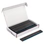 Ciężarki klejone, stalowe, do felg aluminiowych, typu SLIM, malowane w kolorze czarnym. Opakowanie zawiera 20 pasków o gramaturze 60 gram. Każdy pasek to 12 sztuk ciężarków o gramaturze 5 gram. Ciężarki o eleganckim, kwadratowym kształcie, idealnie dopasowują się do felgi gwarantując precyzyjne wyważenie felg aluminiowych. Ciężarki posiadają również szeroką niebieską taśmę, która zabezpiecza taśmę klejącą.