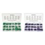 Kompletny, uniwersalny zestaw 521 oringów w dwóch wariantach kolorystycznych – zielonym i fioletowym – przeznaczony do uszczelniania układów klimatyzacji samochodowej. To niezbędne wyposażenie każdego warsztatu serwisowego specjalizującego się w klimatyzacji.