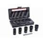 Zestaw specjalistycznych nasadek do wykręcania śrub, dostarczanych w praktycznym etui z tworzywa sztucznego, w zestawie z odbijakiem.