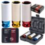 Wykonane ze stali chromowo-molibdenowej CrMo. Przeznaczone do pracy z kluczem pneumatycznym oraz do pracy w ciężkich warunkach. Gwarantują wysoką wytrzymałość na uderzenia. Idealnie dopasowane do śruby. Po nałożeniu nie pozostawiają żadnych luzów. Precyzyjnie wykonane, pokryte metaliczną warstwą, która chroni przed zarysowaniami. Nasadki w trzech kolorach w mocnym plastikowym opakowaniu.