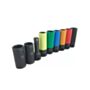 Zestaw nasadek udarowych, zabezpieczonych ochronną otuliną do felg aluminiowych.