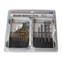 Zestaw 17 wierteł zapakowany w praktycznej plastikowej kasecie.