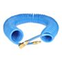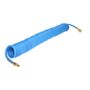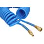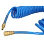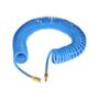 Wąż 12 x 8 mm to poliuretanowy spiralny wąż w kolorze niebieskim, o długości 15 m. Okuty w szybkozłączkę i wtyczkę mosiężną, ze sprężyną wzmacniającą.