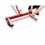 Wózek wyposażony jest w rolki, które można ustawić w trzech pozycjach, zależnie od rozmiaru przewożonych kół. 2 gładkie, obrotowe rolki umożliwiają dokładne ustawienie opony / koła na piaście.