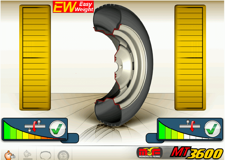 Dzięki zastosowaniu dwóch ramion pomiarowych wprowadzanie parametrów (szerokość, średnica, odległość na wałku) koła jest bardzo łatwe i szybkie.