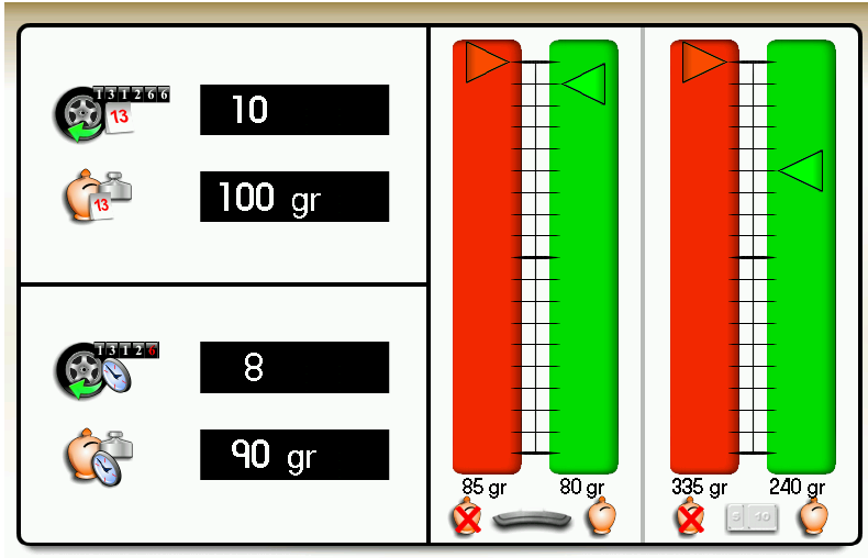 - tryb dynamiczny dla aluminiowych obręczy motocyklowych (ciężarki klejone po obu stronach obręczy).