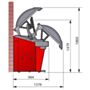 Dzięki specjalnej konstrukcji maszyny, możliwe jest ustawienie jej tuż przy ścianie przy jednoczesnym zachowaniu możliwości obsługi kół o dużej średnicy całkowitej do 44 cali (1117mm).