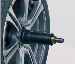 Nowy automatyczny elektromechaniczny system mocowania kół wyważarki Mondolfo Ferro zapewniający krótszy czas pracy i wyższą dokładność centrowania.