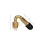 Mosiężna przedłużka zaworu kątowa 45° renomowanej firmy WONDER przeznaczona do pompowania kół samochodów dostawczych, ciężarowych i autobusowych. Przedłużka ułatwia dostęp do zaworu zamontowanego na kołach bliźniaczych. Gwint 8 mm. Wyprodukowany we Włoszech.