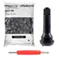 100 sztuk zaworów gumowych z EPDM, przeznaczonych do bezdętkowych kół samochodów osobowych i dostawczych, typ TR 414, z trzpieniem aluminiowym, na otwór w feldze: 11,3 mm (+0,4 mm), maksymalne ciśnienie 4,5 bar.